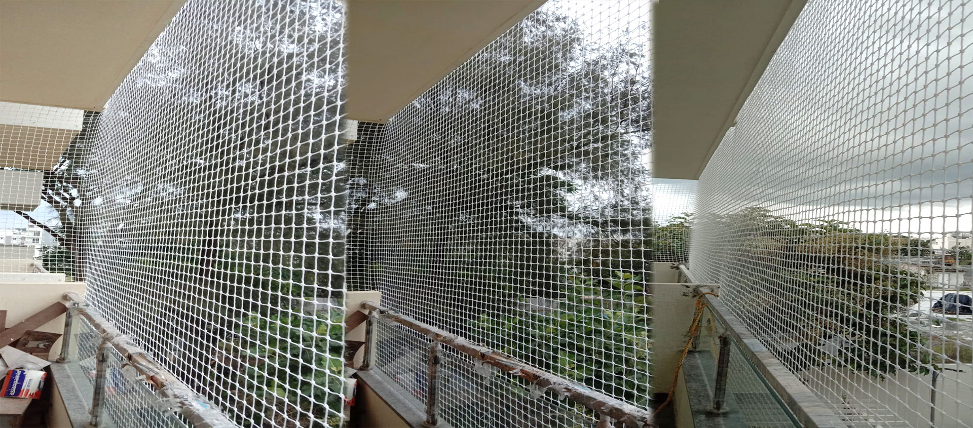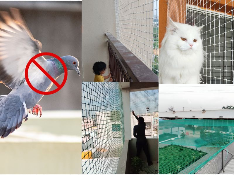 We are qualified experts in installing safety nets for balconies, pigeon nets for balconies, anti-bird nets, cricket net practice, children’s safety nets, construction safety nets, duct area safety nets, buildings, industrial safety nets, and swimming pool safety nets. All varieties of safety nets, including HDPE nets, nylon nets, glass safety nets, car parking safety nets, stairway safety nets, monkey safety nets, terrace top nets, coconut tree nets, etc.
